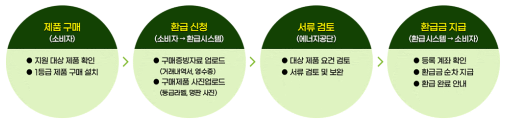 - 에너지소비효율 1등급 제품 구매 시 최대 30만 원 환급 + 브랜드별 추가 할인 제공