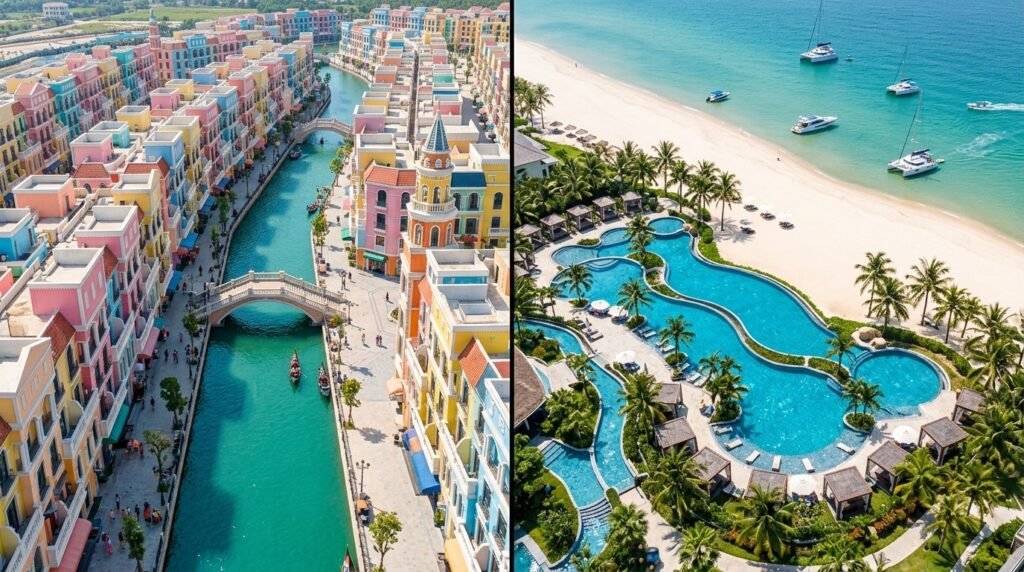 푸꾸옥은 크게 사파리와 놀이공원이 있는 ‘북부’, 야시장과 공항이 있는 ‘중부’, 해상 케이블카와 고급 리조트가 있는 ‘남부’로 나뉩니다. 한 곳에만 머물며 왕복하면 지치기 쉽습니다.