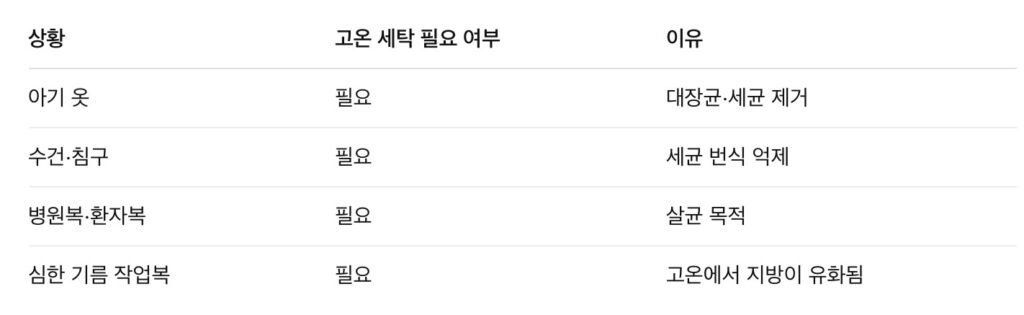 고온 세탁(60℃ 이상)이 필요한 경우는 매우 제한적이다